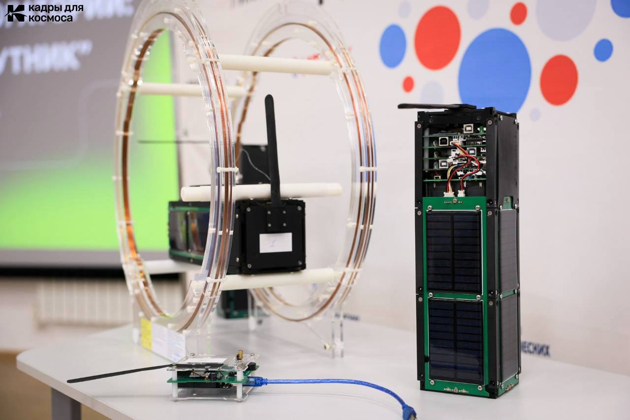 Практическая часть прошла в формате мастер-класса «Мой первый спутник». Участникам показали конструкцию кубсата, базовые модули платформы и принципы работы малого аппарата, а также продемонстрировали образовательные возможности конструктора.