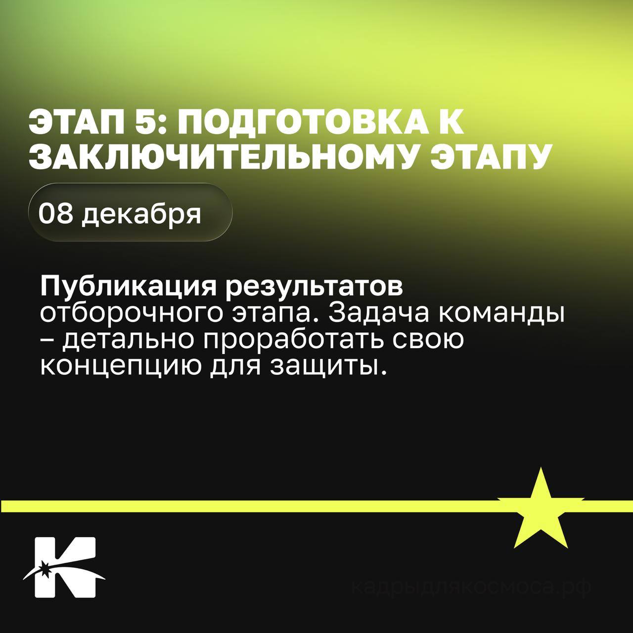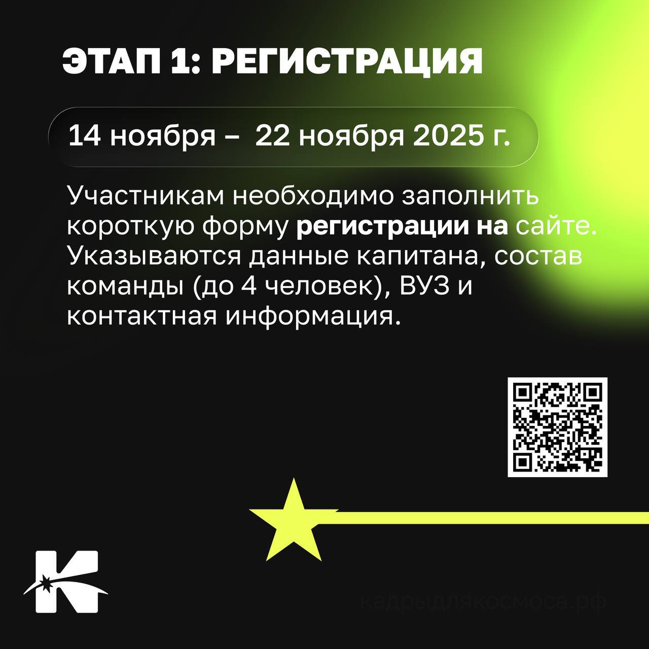 Зарегистрируй себя и свою команду на сайте: https://кадрыдлякосмоса.рф/case