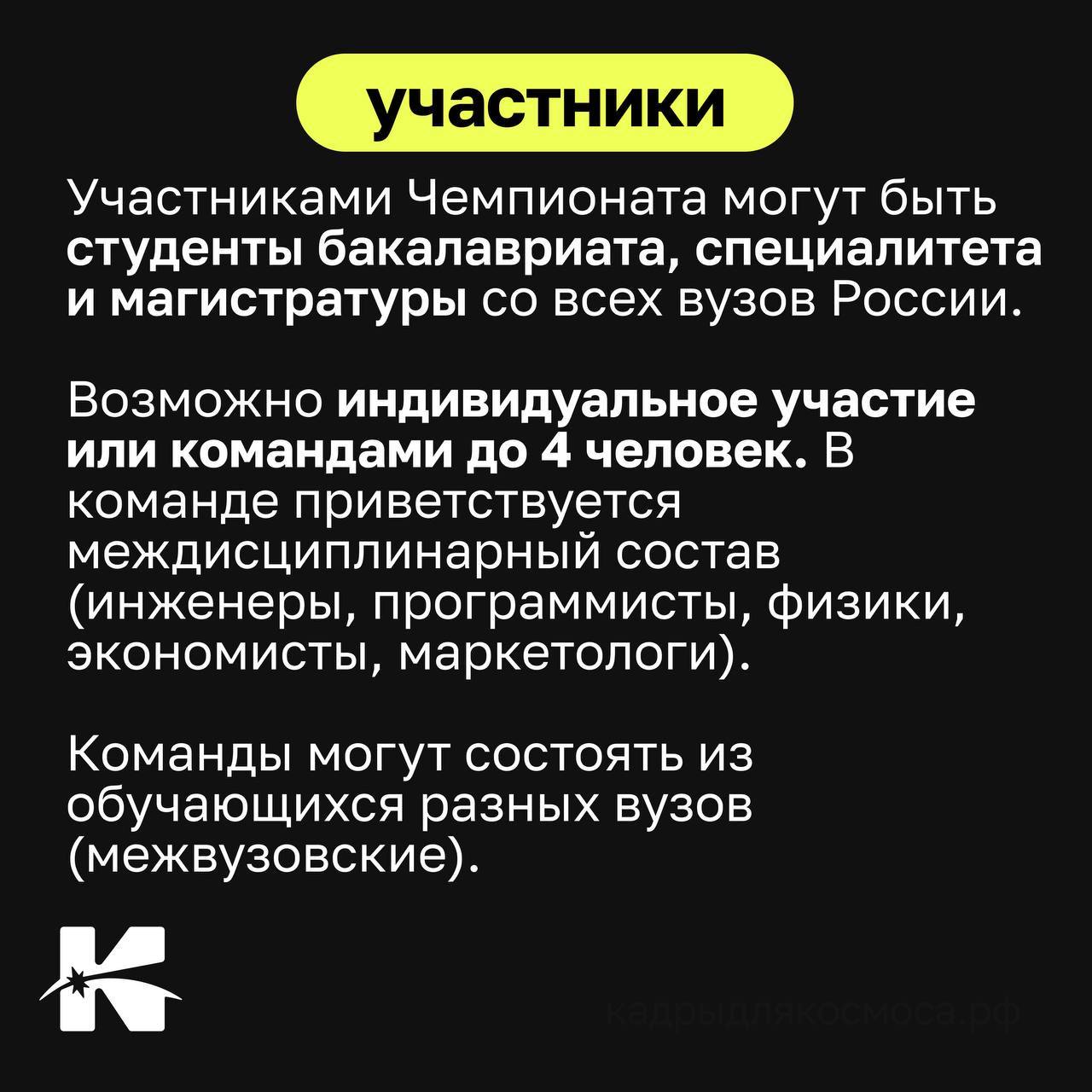 Участвуй один или собери команду до 4 человек. Межвузовские и междисциплинарные команды — это сильное преимущество! 🦾